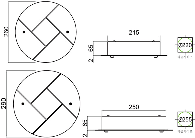 SP260 : 260Ø x 65 SP290 : 290Ø x 65 |