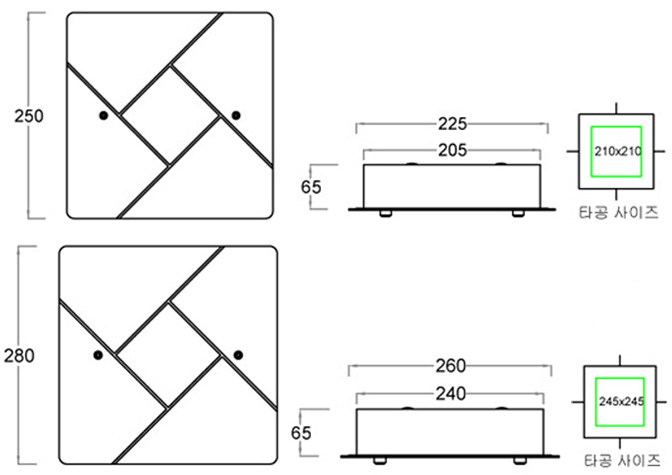 SP250 : 250x250x65 SP280 : 280x280x65 |