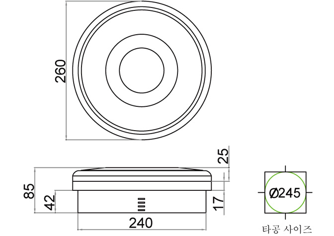 2.KR-AP260C2A(매입형) | 15W | 105lm/W이상 | 5700K(주광색) | 80이상 | 0.9이상 | KS |