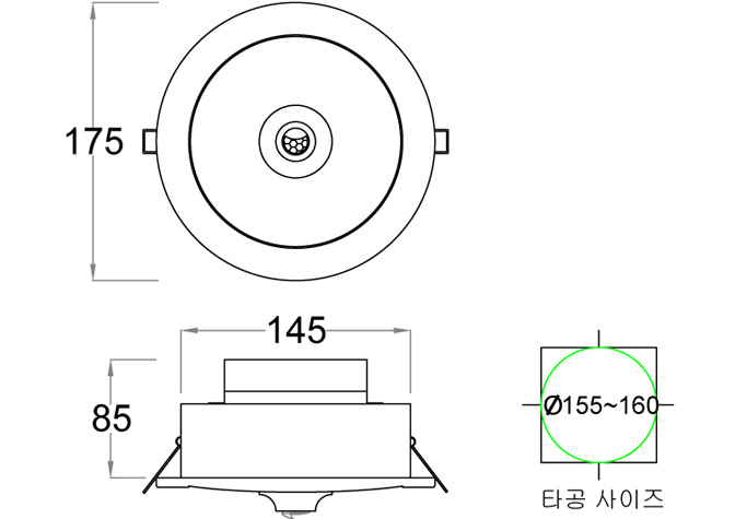 2.KR-MD2B-SP175C1DL-60JK10 | 10W | 100lm/W이상 | 4000K(주백색) | 80이상 | 0.9이상 | 고효율, KS |